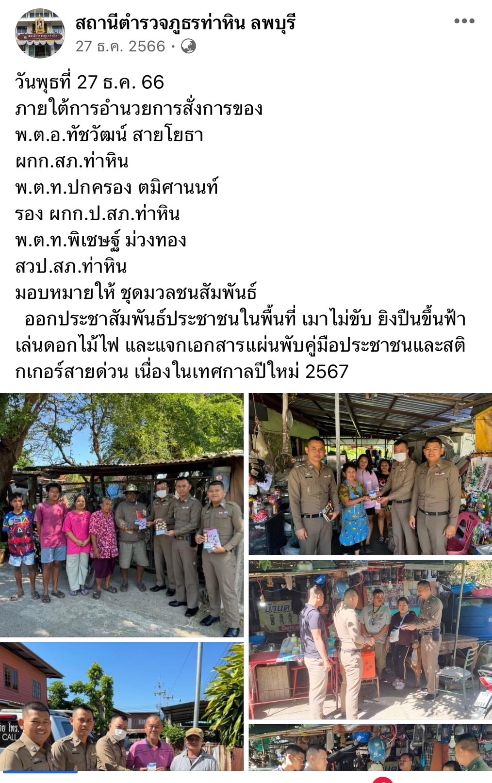 การประชาสัมพันธ์ข้อมูลผลการดำเนินงานของสถานีตำรวจภูธรท่าหิน ผ่าน Facebook ประจำเดือน ธันวาคม 2567