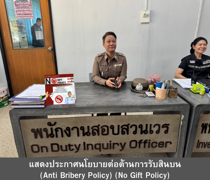 สภ.ท่าหินได้ดำเนินการ ติดป้าย ต่อต้านการรับสินบน (Anti-Bribery Policy) และการไม่รับของขวัญของกำนัลหรือประโยชน์อื่นใด (No Gift Policy) จากการปฏิบัติหน้าที่ ณ จุดบริการและจุดประชาสัมพันธ์ ที่ประชาชนพบเห็นได้